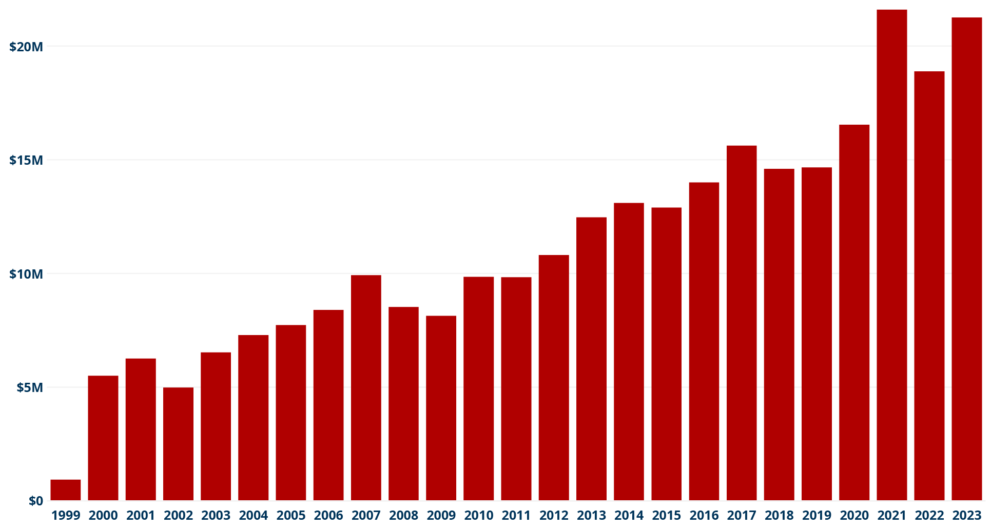 Operating revenue for the James Madison Education Fund is used to support the James Madison Memorial Fellowship Foundation’s programs and activities. Operating revenue for the James Madison Education Fund does not include corpus funds from the Fund’s permanent endowment. Unused surplus earnings for the endowment are reinvested annually.